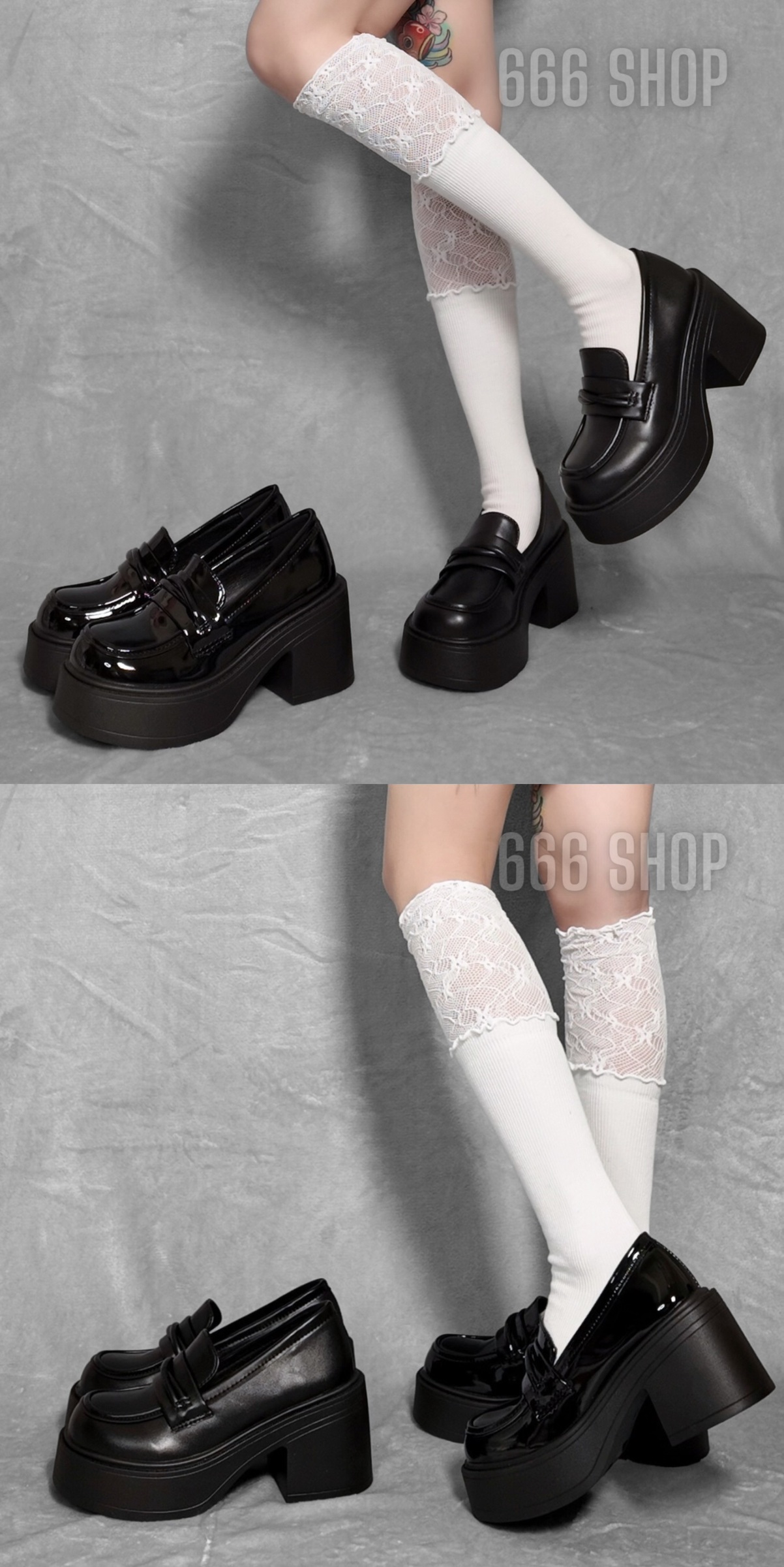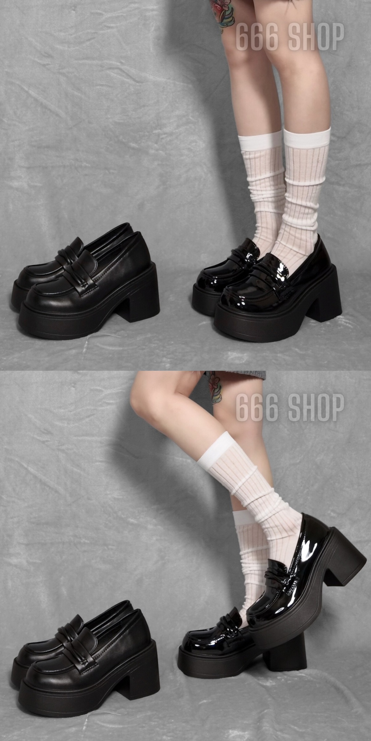 35-40碼8.5cm厚底樂福鞋日系JK高跟小皮鞋淺口防水台粗跟 總分: 0 - 0 評價